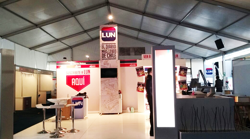 Para EXMA 2016 se realiza stand de 36m2 para cliente Las Últimas Noticias, donde se combinan zonas de suscripción e información con un entretenido montaje para que los asistentes pudiesen convertirse en portada del diario, llevándose consigo impresa su portada de recuerdo.