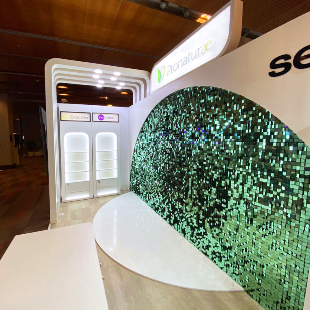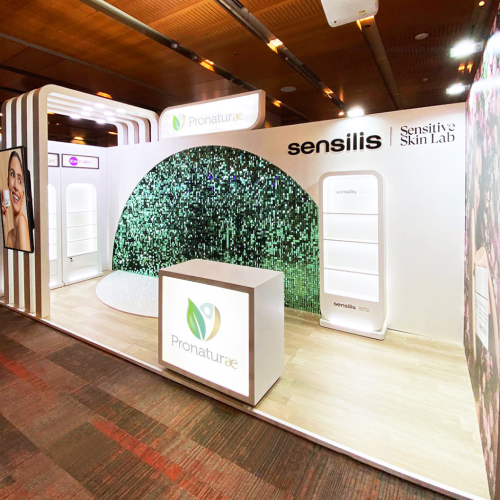 Cada elemento fue diseñado no solo para destacar en feria, sino también para ser reutilizado posteriormente en salas de exhibición, optimizando inversión y reduciendo residuos.